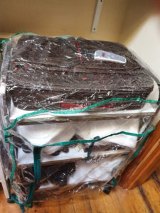 In the bathroom I have removed the reusable cloths we introduced and we have returned to using disposable paper towels. If the bathroom is used, I will need to clean it before the next client and I am allowing half an hour between clients to allow for thorough cleaning of the couch, safe removal of the towels and coverings, cleaning door handles, chairs, reception desk – anything which may have been contaminated. In the corridor I have several trolleys which I use to store items I commonly use and I have discovered a greenhouse cover fits over these, so can be wiped down. I have also invested in a steam cleaner for the clinic, in case there are areas I don’t feel I can reach and clean properly by hand. I’ve even ordered larger laundry bags, so I won’t need to touch the used towels and coverings as much as previously.